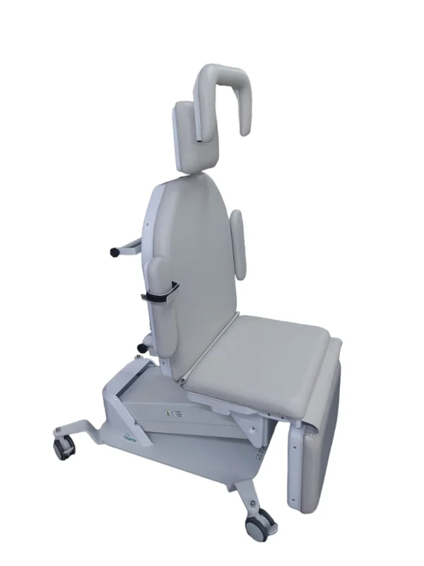 A segurança do paciente é reforçada pela base estável e pelos braços de apoio, que oferecem o suporte necessário para pacientes de todas as idades, desde crianças até idosos, garantindo um atendimento humanizado e seguro.